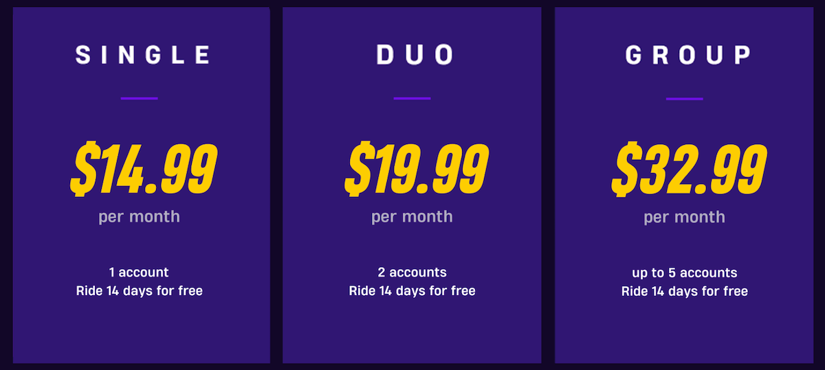Until today, you could only subscribe to ROUVY as an individual for $15/month, $84/six months, or $144/year per person. However, starting October 11, 2023, you can choose from three plans (Duo and Group are new):